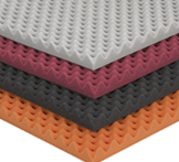 - Imprecise bass, due to room resonances. Though mechanisms and solutions are another, the bad sound from this is similar. In a room you can have so called standing waves. So at specific (there are many) frequencies, the room will resonate. With a tone generator you can easily find those frequencies. First, of course this sounds bad. These are (multiple) low frequencies that are derived from and added to the music signal itself. Mathematical this is called unlinear distortion. It makes the music sound muddy. So when you have a room resonance at for instance 110Hz, a music tone of 115 Hz, will not make an additional tone of 110Hz appear, but rather that tone of 105 Hz becomes louder, and fully undamped, which is another word for distortion. On the other hand, short low frequency impulses, like from a drum, may make the whole range of room frequencies appear spontaneously. So the room responds with some rumble-like echo which is hard to recognize, as you will also hear the original music. To solve this, all you need is damping materials, and not even very much. Here is a picture of such material. Here is a good company I bought some from. Click on 'recording studio'. I recommend to buy 8 Anodes of 100 x 50cm , 6cm thick. Do not use similar products for packaging purposes, though it is cheaper. The acoustic foam is quite special material. Actually it is not expensive, and you can buy it in nice colors. It doesn't matter where you place them on the wall, they just have to be there. Put some on the long side and some on the short side of the room. You can disguise them as paintings, with decorated cloth over them. The sound will pass through the cloth. After the room is properly damped, not to much and not too little, the muddy bass sound is gone. You should not overly damp the room, then it becomes what is called acoustically dead. Such a room sounds sterile, and you will not like it. For a good effect, you reach the same with few thick Anodes, as with many thin Anodes. So take the 6cm, and then 8 Anodes may be all you need.